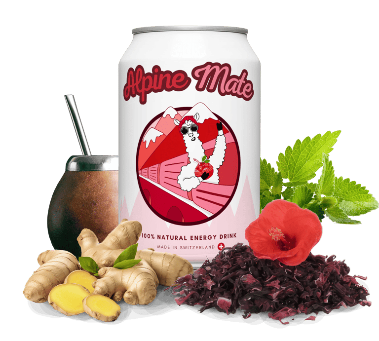 Alpine Mate est une boisson naturelle à base de plantes (maté, thé vert, hibiscus, gingembre, muirapuama), créée avec soin pour offrir une alternative rafraîchissante et saine aux boisons traditionnelles.